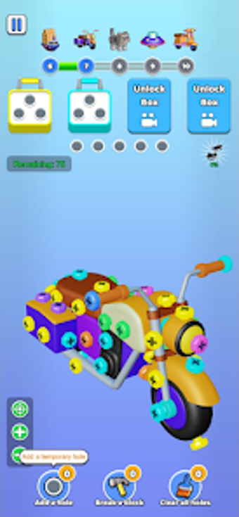 Screw Destroyer 3D is een boeiende 3D-puzzelgame die spelers uitdaagt met meer dan 100 niveaus, elk met unieke uitdagingen en obstakels. De gameplay is ontworpen om een balans te bieden tussen ontspanning en mentale stimulatie, van de Novice Workshop tot de Master Factory. De game bevat een creatieve power-up systeem, waardoor spelers strategisch kunnen omgaan met de puzzels om de hoogste scores te behalen.